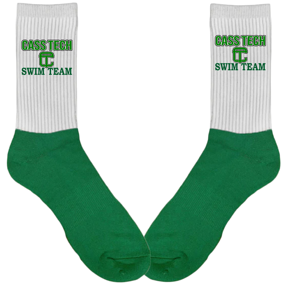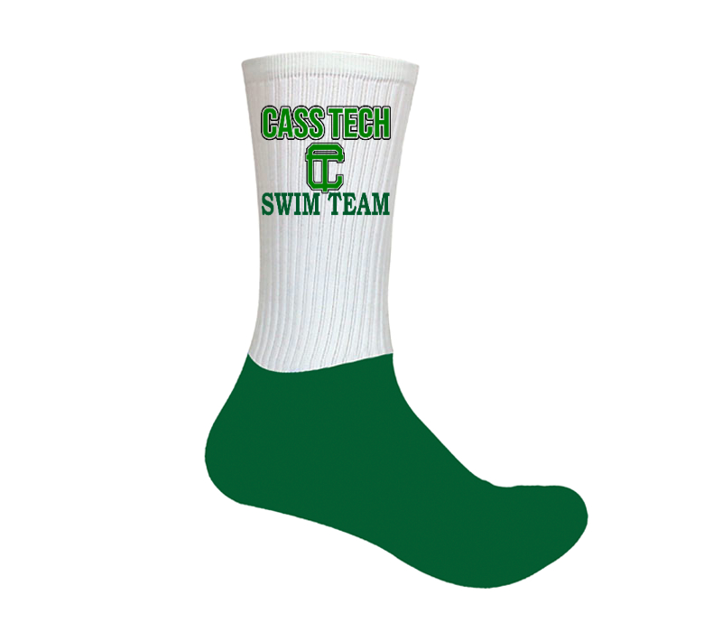 Cass Tech Swim Team Crew Socks White Leg with Geen Foot